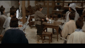 In the above passage, the consumption of alcohol is tied to past emotional trauma. But there are plenty of examples in wuxia stories where there is no negative stigma attached to drinking and getting drunk. For instance, here’s a clip from the 2008 TV drama version of Jin Yong’s classic Legend of the Condor Heroes. In this scene, the Seven Freaks of Jiangnan compete with the Daoist priest Qiu Chuji in drinking.