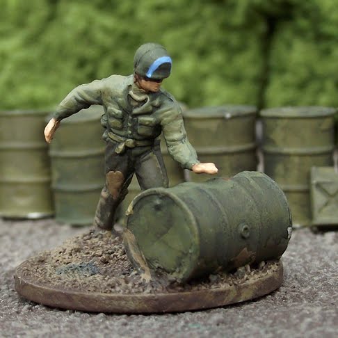 The 1/72 scale oil drums, jerry cans, and block of supplies came from Sgt's Mess.